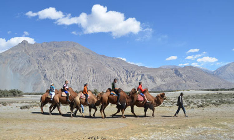 Day 04: Leh - Nubra ValleyAfter Breakfast drive to Nubra Valley via Khardungla (Highest Motor able road in the World, 18,380 ft) post lunch, enjoy the camel safari at Sand Dunes between Deskit & Hundur Village. O/N Nubra Valley.
